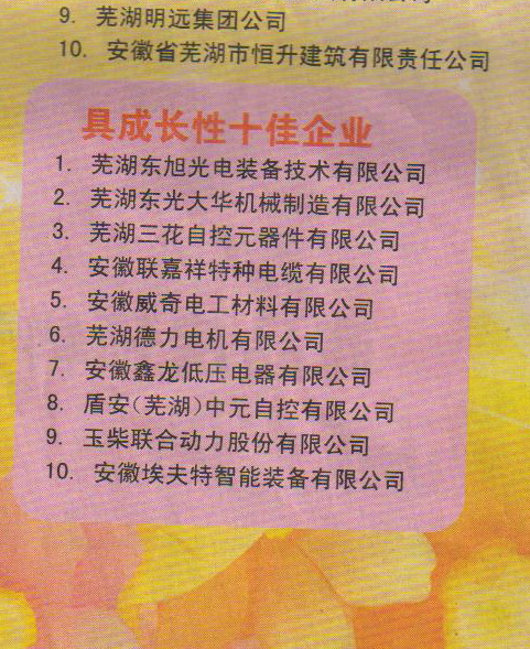 蕪湖德力電機有限公司榮獲蕪湖市2014年度最具成長性十佳企業(yè)第6名
